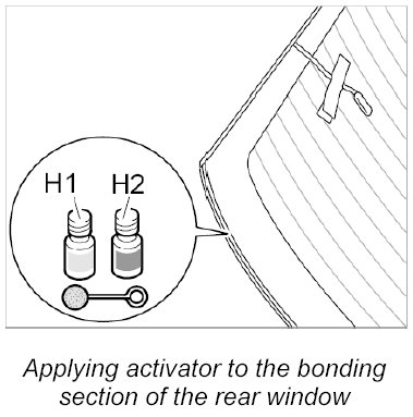 Applying activator to the bonding section of the rear window