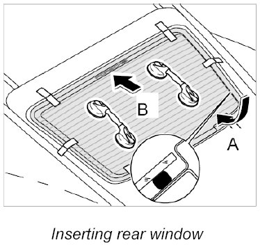 INFORMATION: Two persons are needed to insert and adjust the rear window.