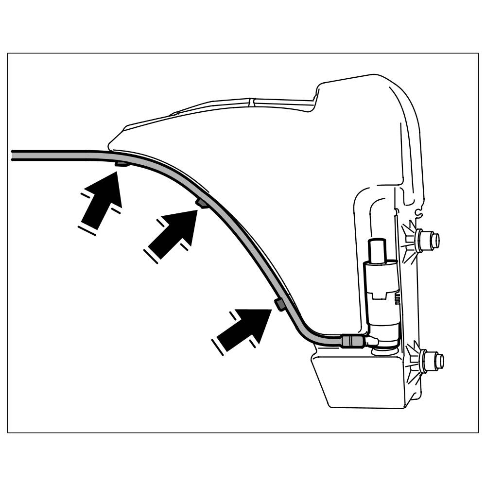 1. Insert hose for headlight washer into clips on the front apron -A-.