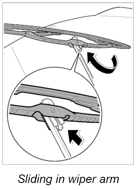 1. Slide wiper blade in from the side and engage in the wiper arm.