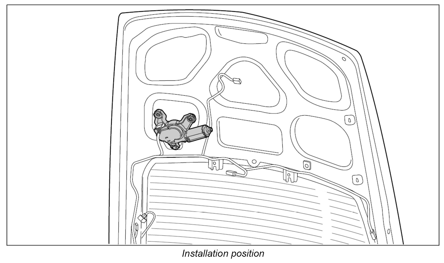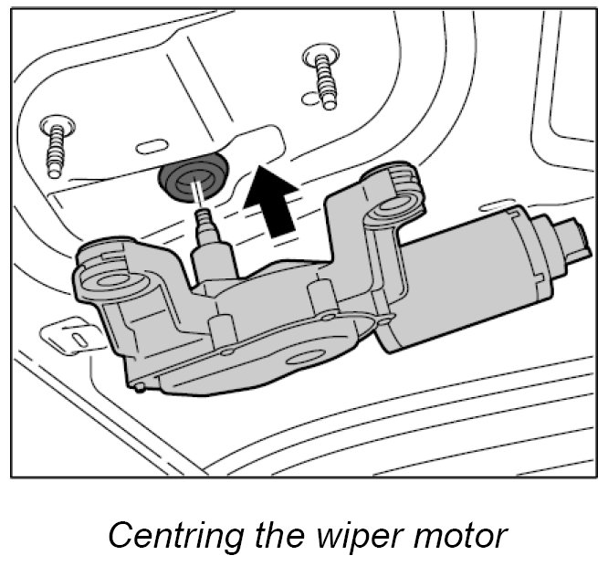 1. Position the wiper motor on the rear lid, while making sure that the drive for the wiper arm is positioned centrally in the sleeve.