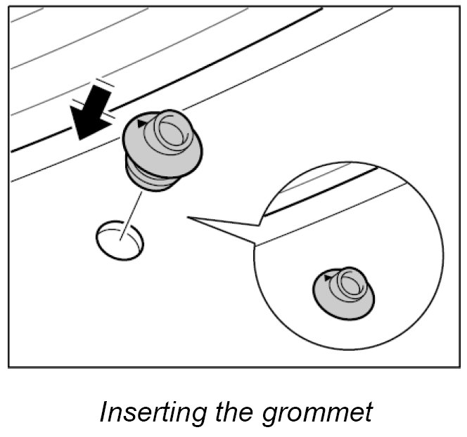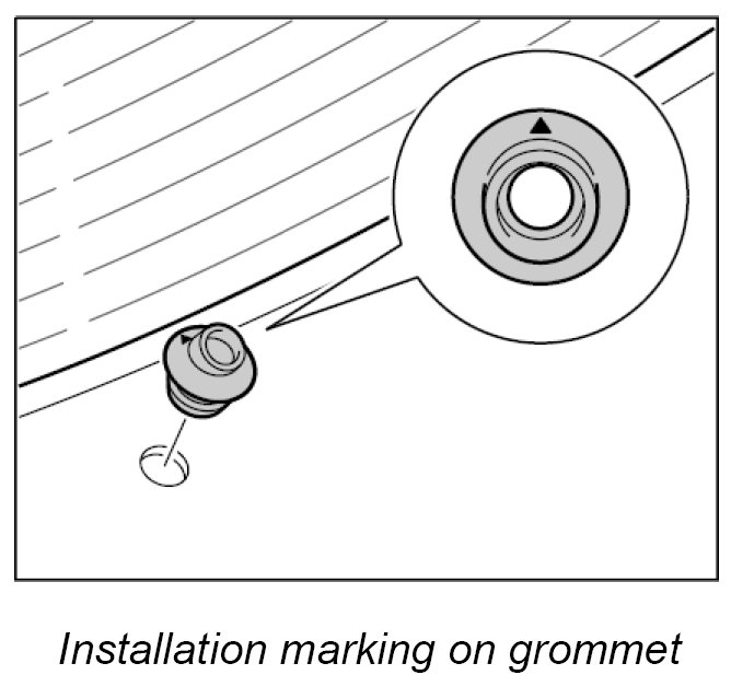 The grommet is marked with an arrow, which must be pointing upwards following installation.