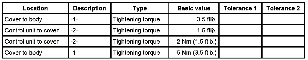 Tightening torques for telephone control unit
