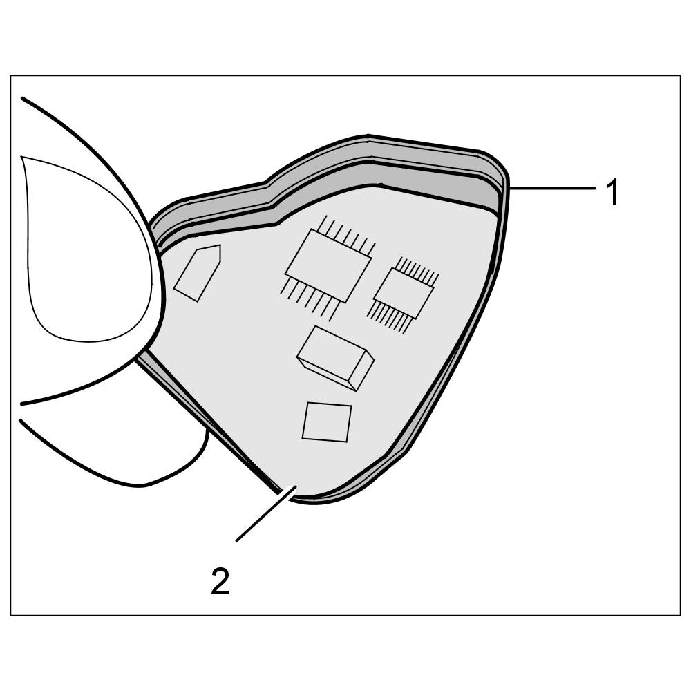3. Insert silicone pad -1- with PCB into the remote control housing.