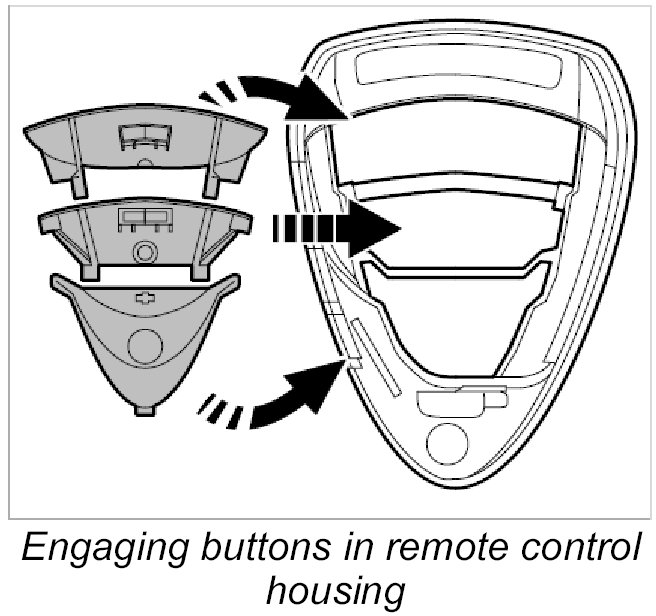 1. Engage new buttons in the remote control housing.