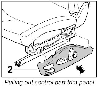 3. Pull out control part trim panel 2 from the cushion in direction of arrow.