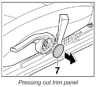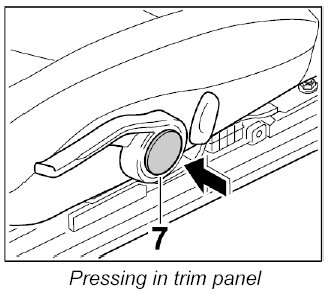 2. Insert control part trim panel 2 into the cushion in direction of arrow.
