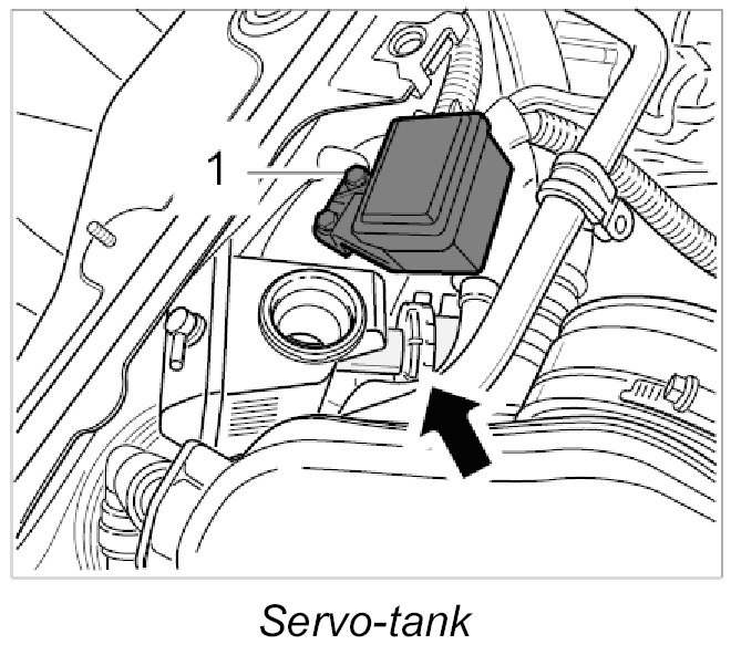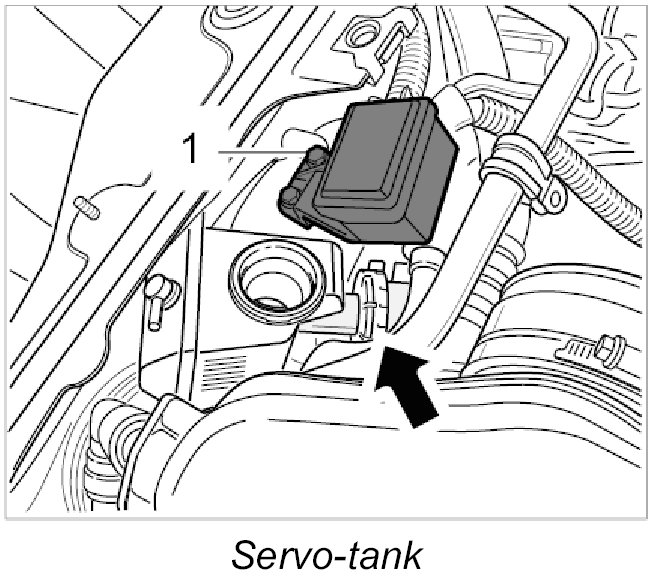 10. Position power-steering reservoir. Lock bayonet lock -Arrow-on power-steering reservoir.