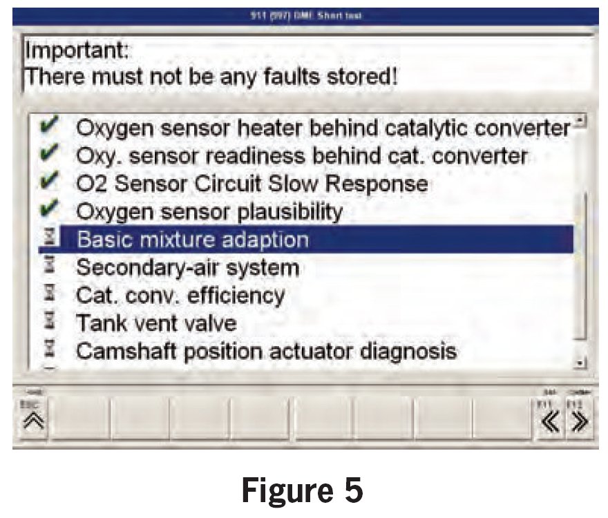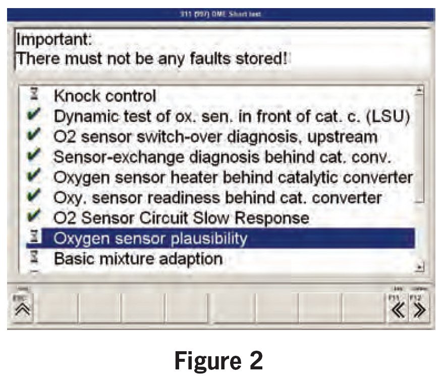If the "Secondary-air system (total)" flag is the only flag that is not checked, this means that the short test has finished and the diagnosis was performed. However, the cycle flag for "Oxygen sensor plausibility" was not set or the "Basic mixture adaption" was not performed correctly.