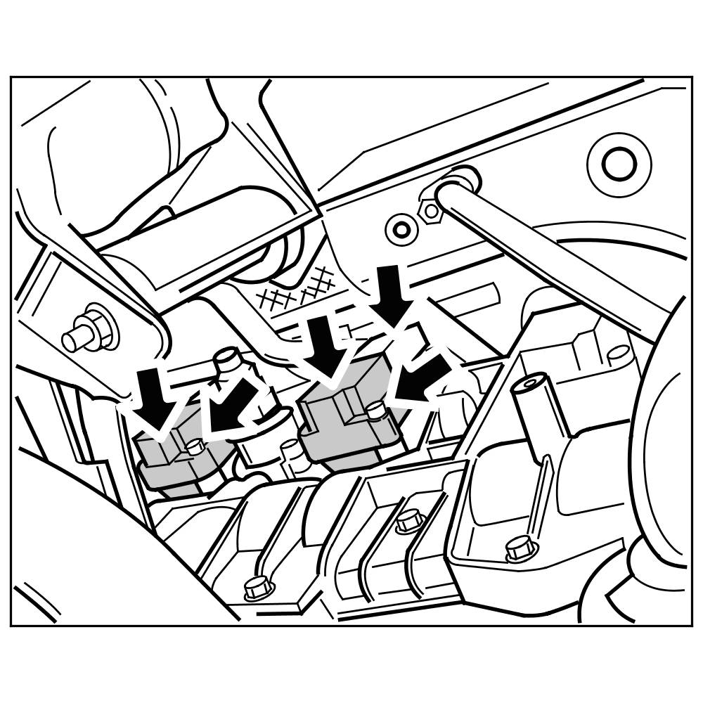 1. Slide rubber sleeves of ignition coil plug connections upwards.