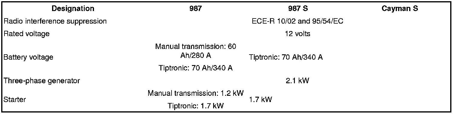 Starting and Charging: Specifications