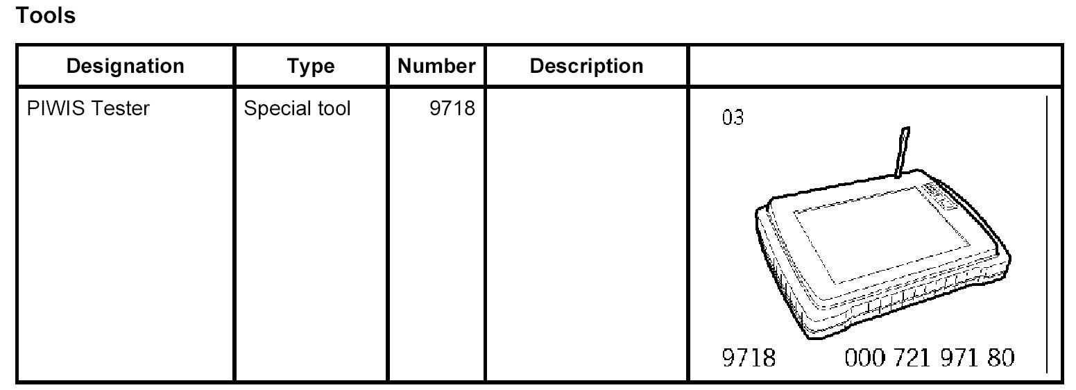 - If possible, before the control unit is removed and replaced, a read-out of the vehicle data should be obtained from the Porsche PIWIS Tester 9718 System Tester.