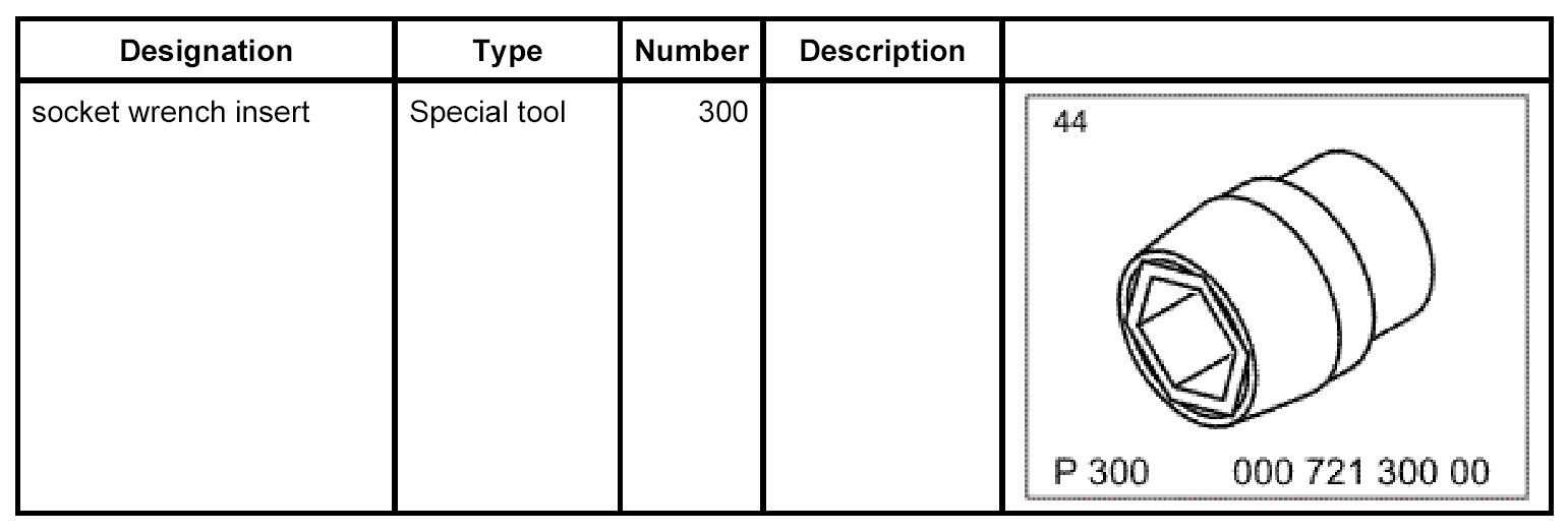 2. Remove rear wheel. Use the specified special tool socket wrench insert 300 to avoid damaging the wheel rims.