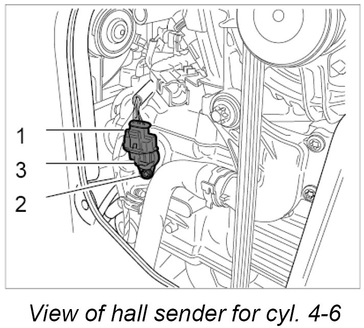 1. If the hall sender for cylinder bank 1 -3 is removed, the rear wall cover must be removed.