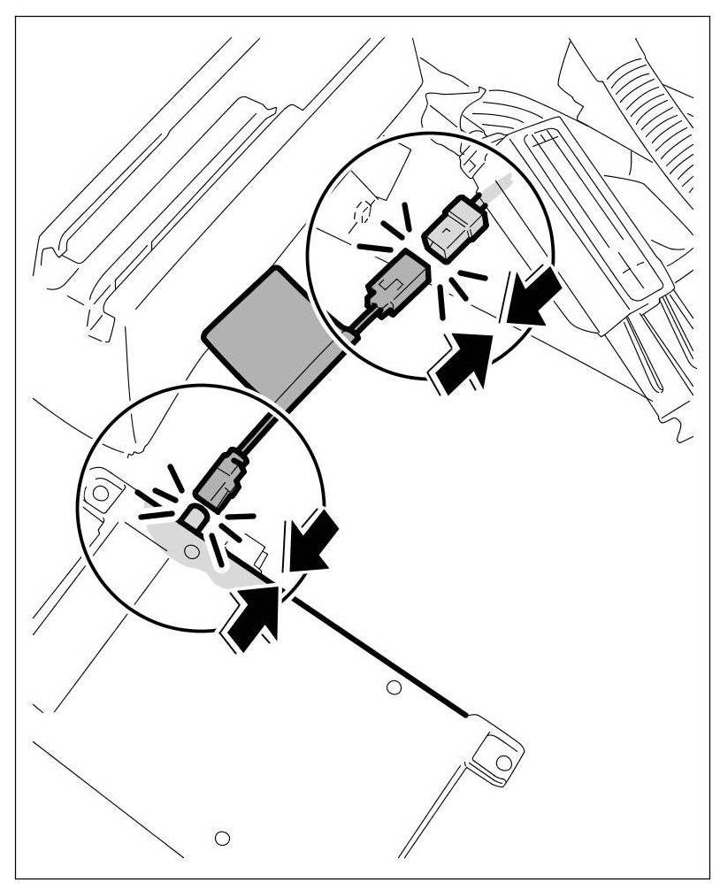 - Plug in adapter cable on wire harness connector until the connector is felt to engage.