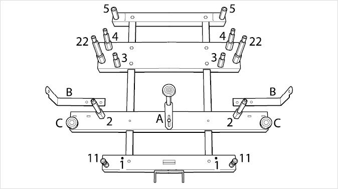 ^ The take-up points 11 and 22 are required for removing the rear axle. Remove the remaining take-up points.