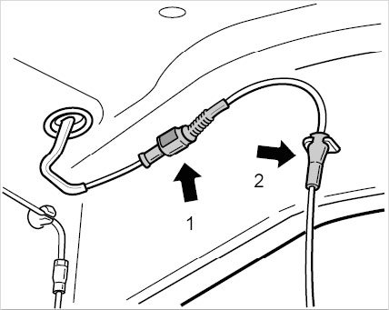 1. Remove the combination wires at the joint (brake wear, CDC sensor) -1- and then unclip the rubber sleeves -2- from the sheetmetal holders.