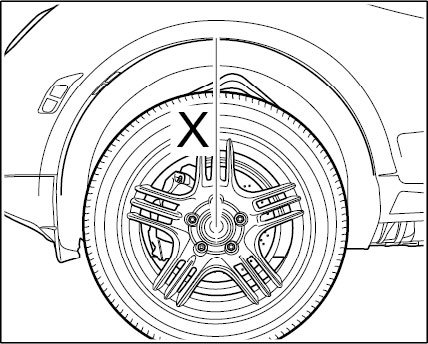 ^ The entire threaded parts of the axle must be tightened in vehicle position. Vehicle position means: vehicle standing on the wheels, or the wheel suspension is being raised using a universal vehicle lift. Dimension -X-, from lower edge of wing to middle of axle 506 mm ±10 mm corresponds to vehicle position.