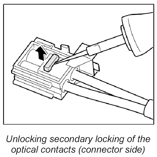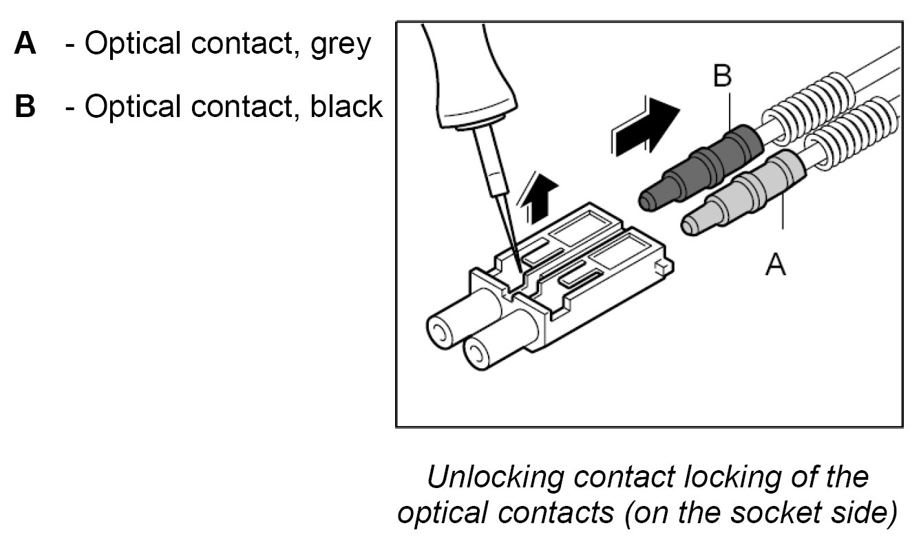 When exchanging the LWL, the optical contacts from the plug connection must be removed.