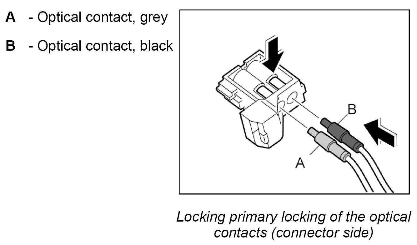 1. Insert the optical contact -A and B- in the connector until it engages audibly.