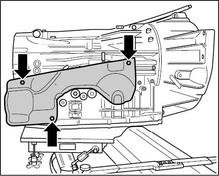 10. Install heat shield on transmission. To do this, screw in three fastening screws -arrow-. -> Tightening torque: 10 Nm (7.5 ftlb.)