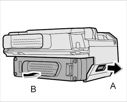 9. Release the locking lugs on both sides -A- and pull out the control unit -B-.