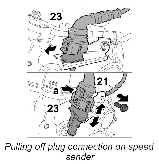 1. 2. Press locking mechanism -a- on electric plug connection -23- and disconnect it.