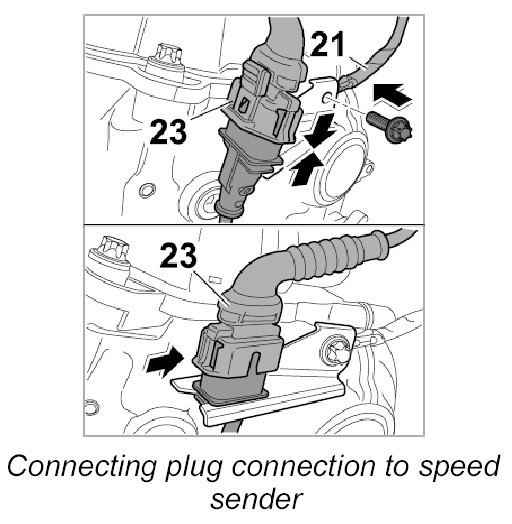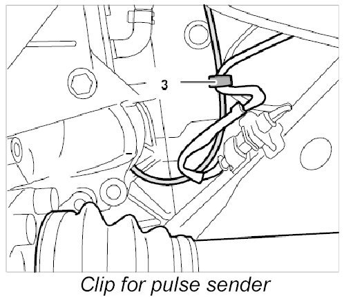 The pulse sender is located on the transmission bell housing to the right and can be accessed on the engine from underneath.