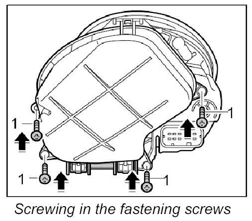2. Insert the control unit in the headlight cap and screw down with both fastening screws -1-.