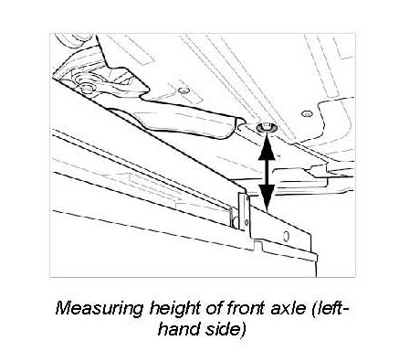 Measure from wheel contact area up to lower edge of diagonal brace (at control arm fastening point).