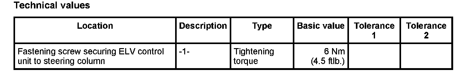 3. Unscrew the fastening screw -1- on the ELV control unit until the fastening screw -1- connects with the steering column. -> Tightening torque: 6 Nm (4.5 ftlb.)