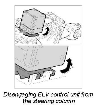 2. Slide the ELV control unit back, disengage it from the steering column and remove it by moving it upwards.