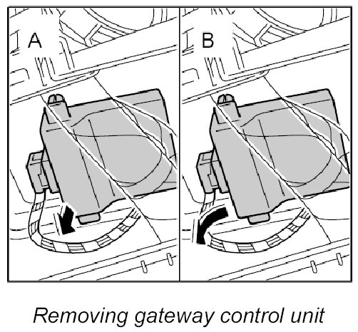 5. -B- Pull the gateway control unit to the left out of the holder.