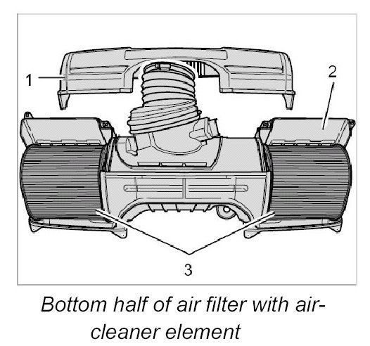 2.2. Lift off top half of air filter -1-.