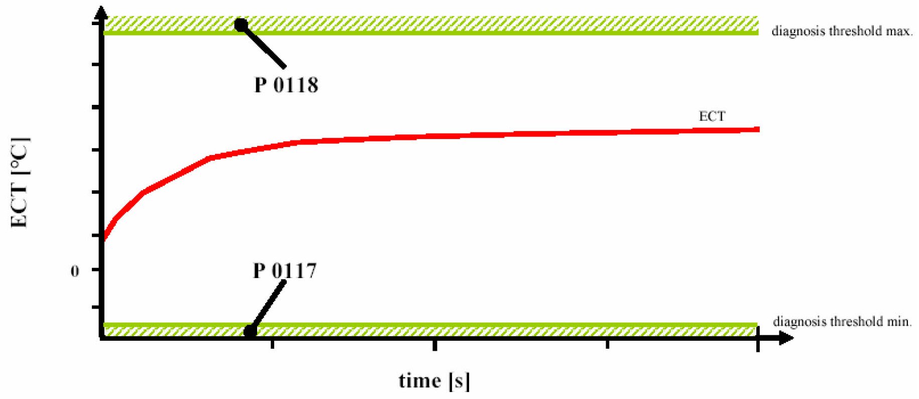 Diagnosis threshold min. < engine coolant temperature < Diagnosis threshold max.