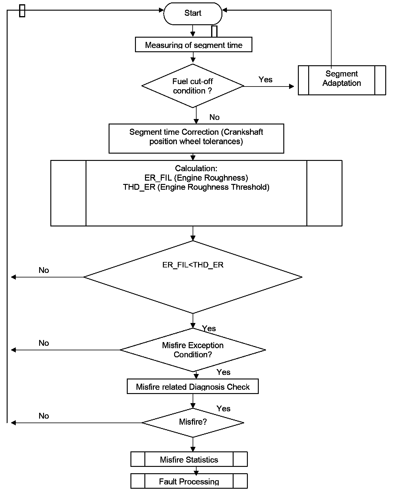 Misfire detection is performed by comparing, the engine roughness threshold value with the engine roughness value. If the threshold is exceeded, single misfire is detected.