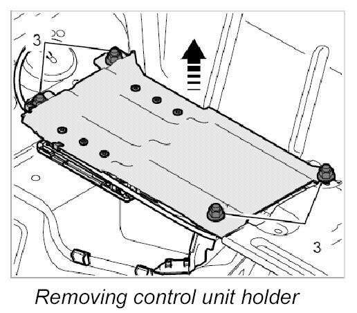 5. Unscrew the four fastening nuts -3- and remove the control unit holder.