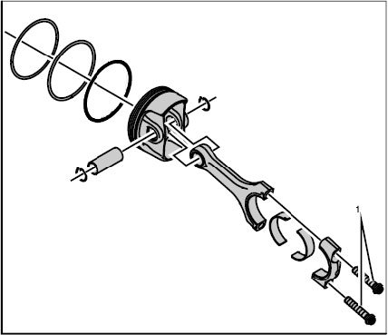 1 - Connecting rod bolts - Initial tightening: 20 Nm (15 ft lb.) - Torque angle: 80°