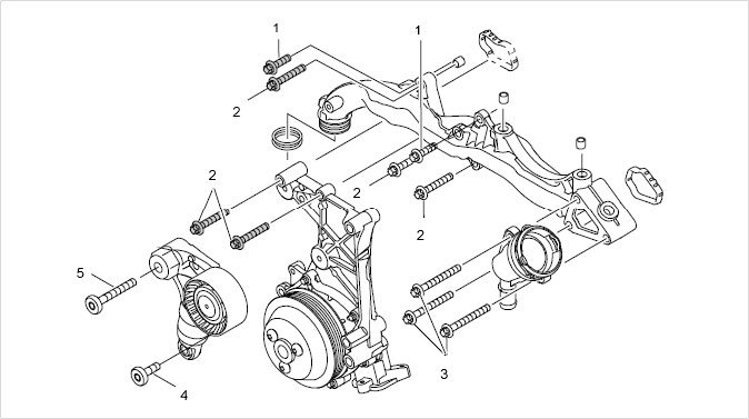 5 - Fastening screw - Initial tightening: 5 Nm (3.5 ft lb.) - Tightening torque: 5 Nm (3.5 ft lb.) - Torque angle: 50°