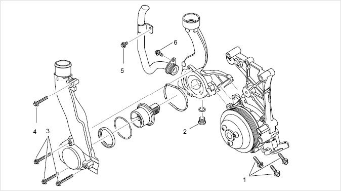 3 - Fastening screw for water guide - Tightening torque: 13 Nm (9.5 ft lb.)