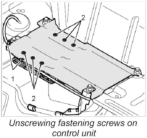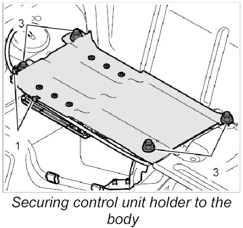 5. Unscrew the four fastening nuts -3- and remove the control unit holder.