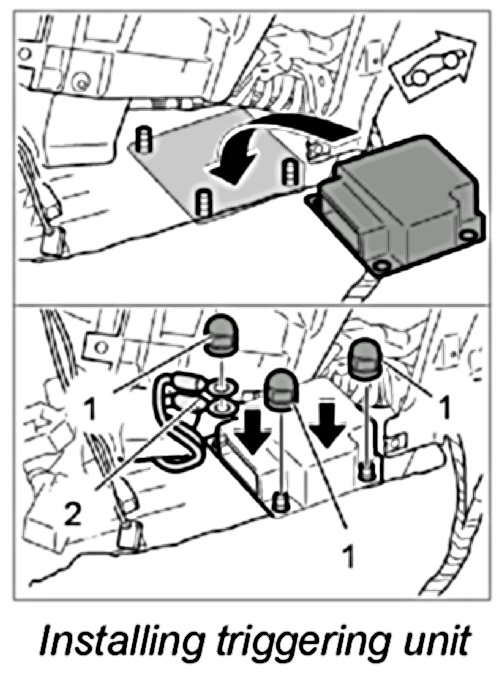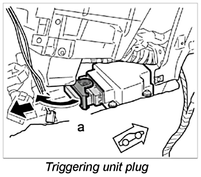 - The airbag triggering unit must not be removed with the connector still plugged in.