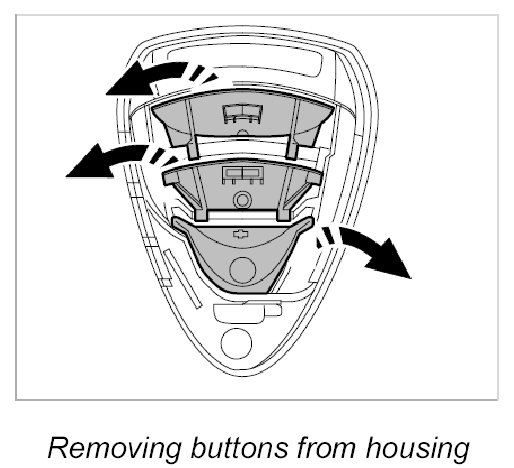 4. Lift up buttons (two or three, depending on the vehicle type) and pull them out of the remote control housing.