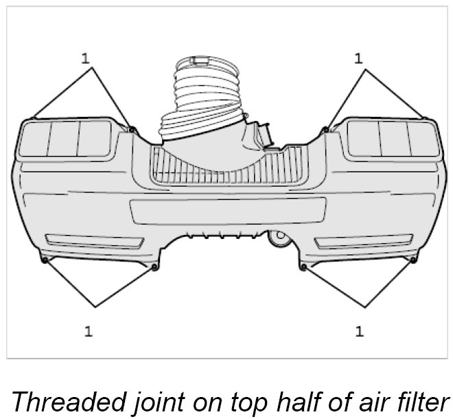 1.1. Screw in eight Torx tapping screws (T25 screw insert) on the upper part of the air filter and tighten carefully. - Tightening torque: 3 Nm (2 ftlb.)