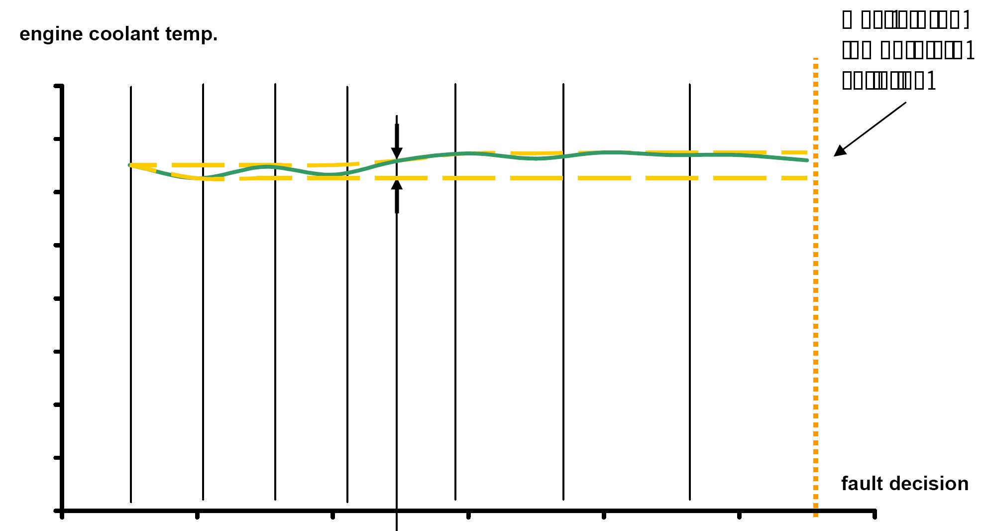The purpose of this diagnosis is to detect an implausible gradient on the coolant temperature signal. The diagnostic function checks whether the difference between one measured coolant temperature value and the succeeding value is too big.
