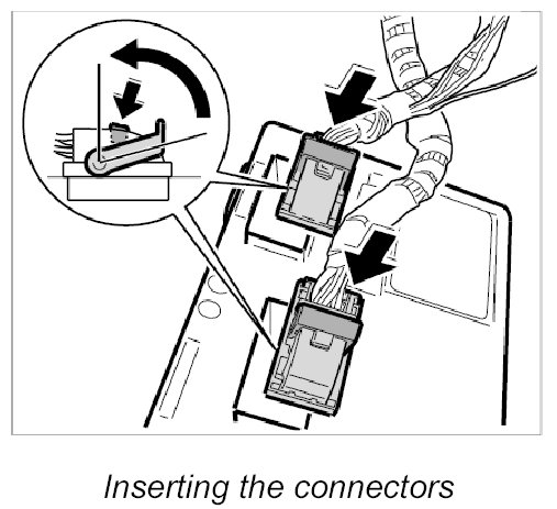 1. Press electrical plugs into control unit and lock them -arrow- so they are felt to engage.