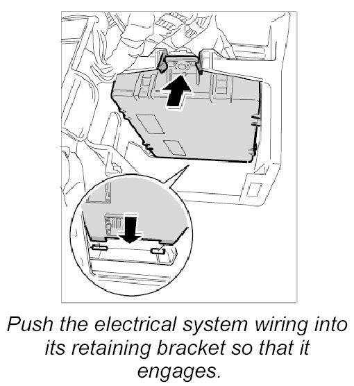 2. Push vehicle electrical system control unit upwards into the holder. It must engage properly. Make sure the electrical leads are not pinched.