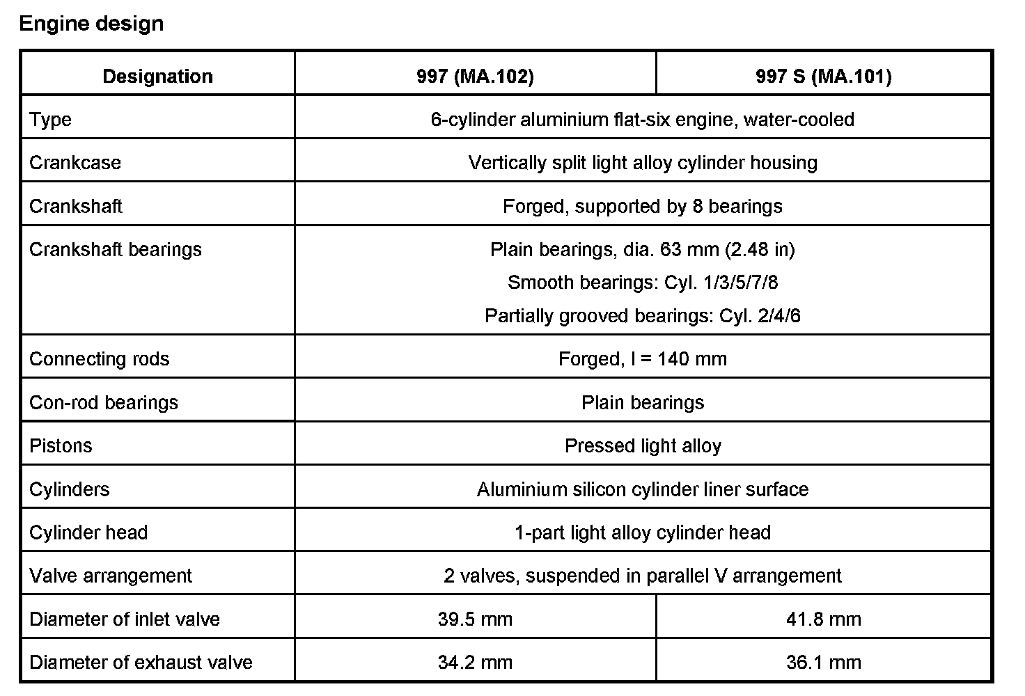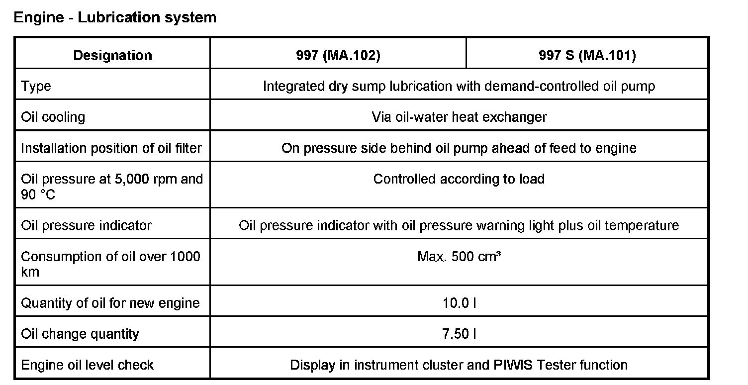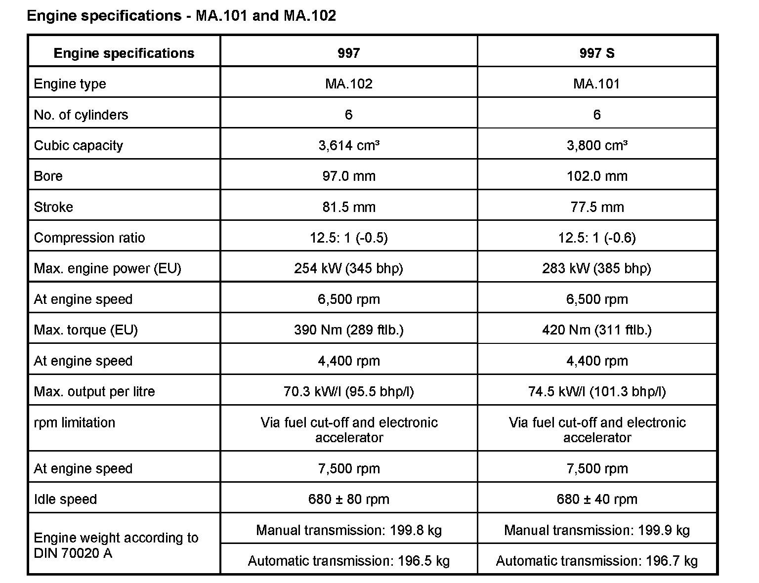 Technical data on engine