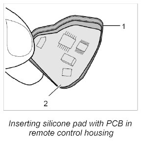 3. Insert silicone pad -1- with PCB into the remote control housing.