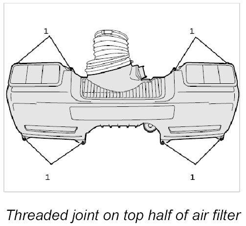 1.1. Screw in eight Torx tapping screws (T25 screw insert) on the upper part of the air filter and tighten carefully.